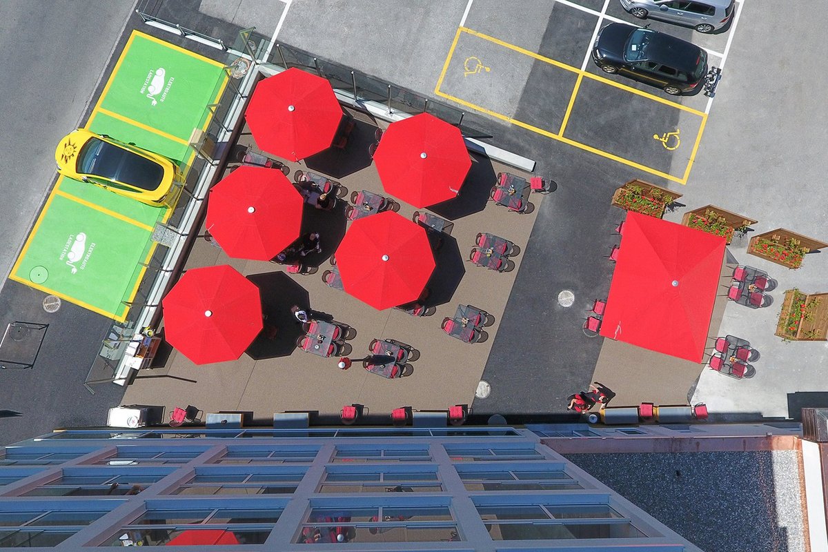 200 places assises avec bar et une belle terrasse ensoleillée offrant 100 places supplémentaires.