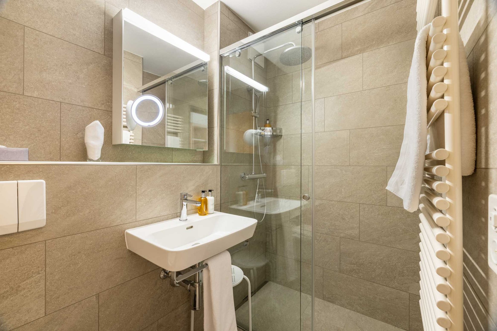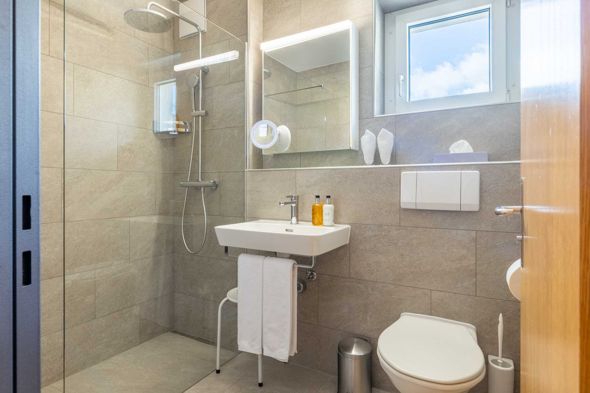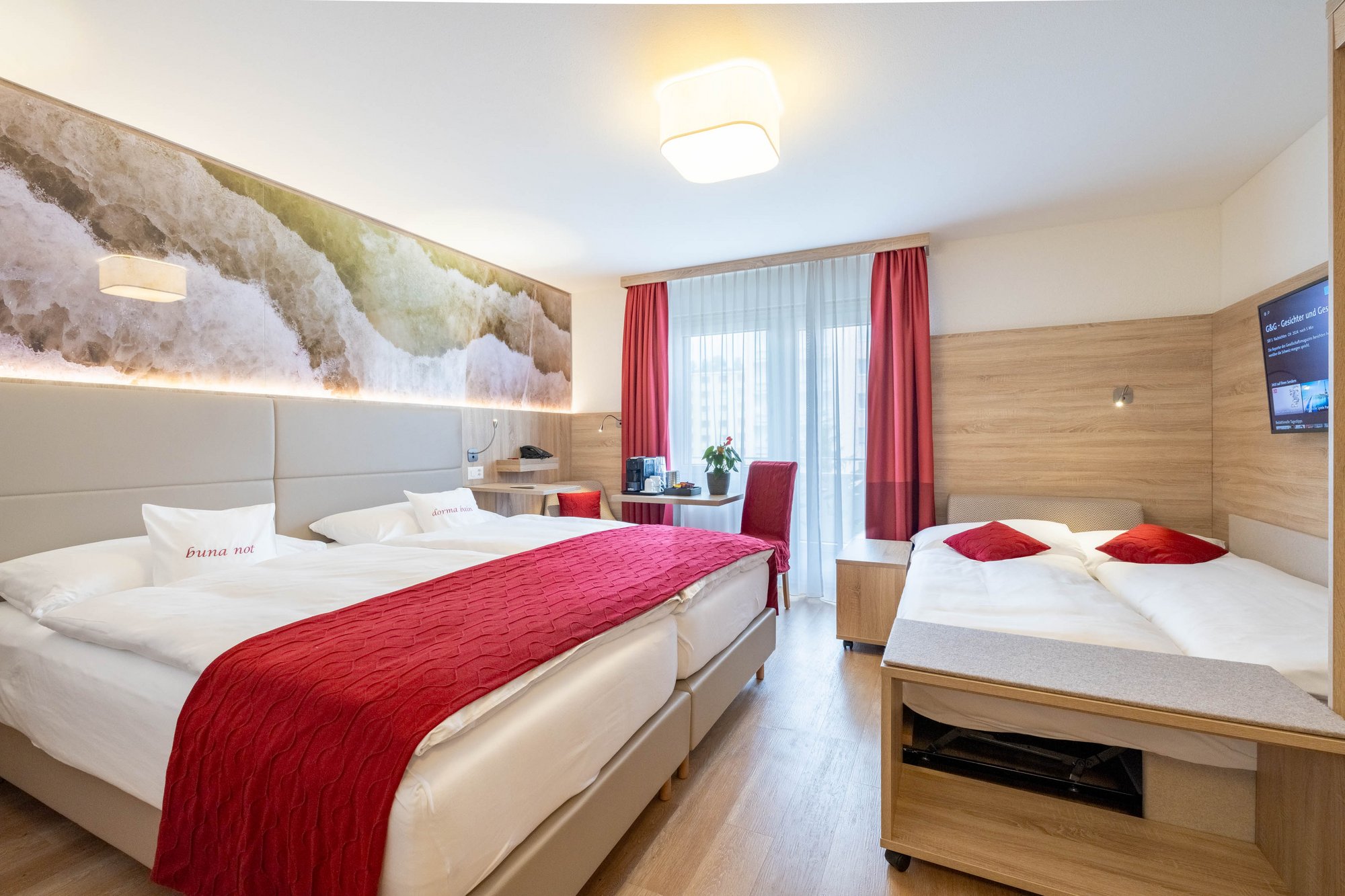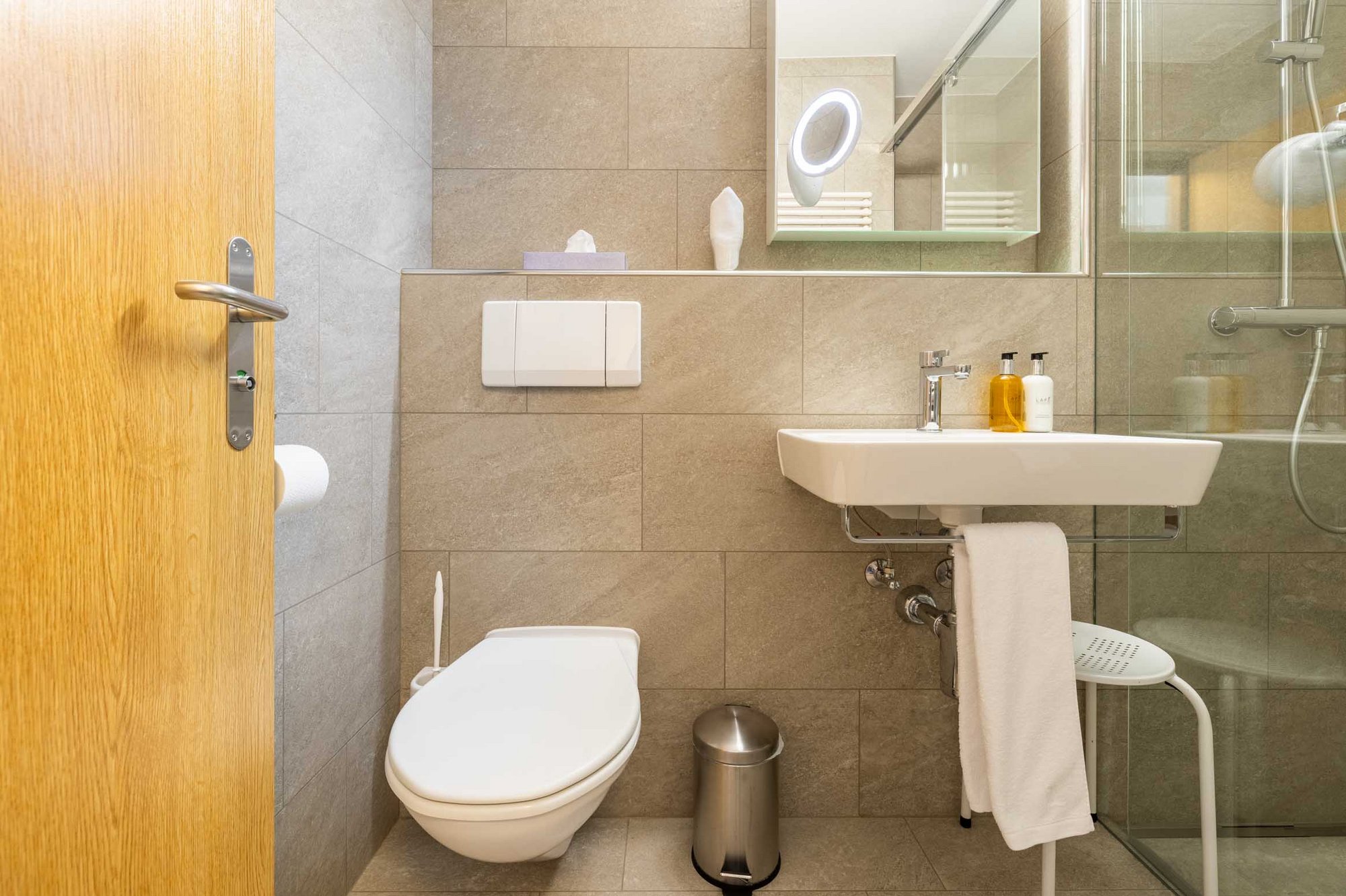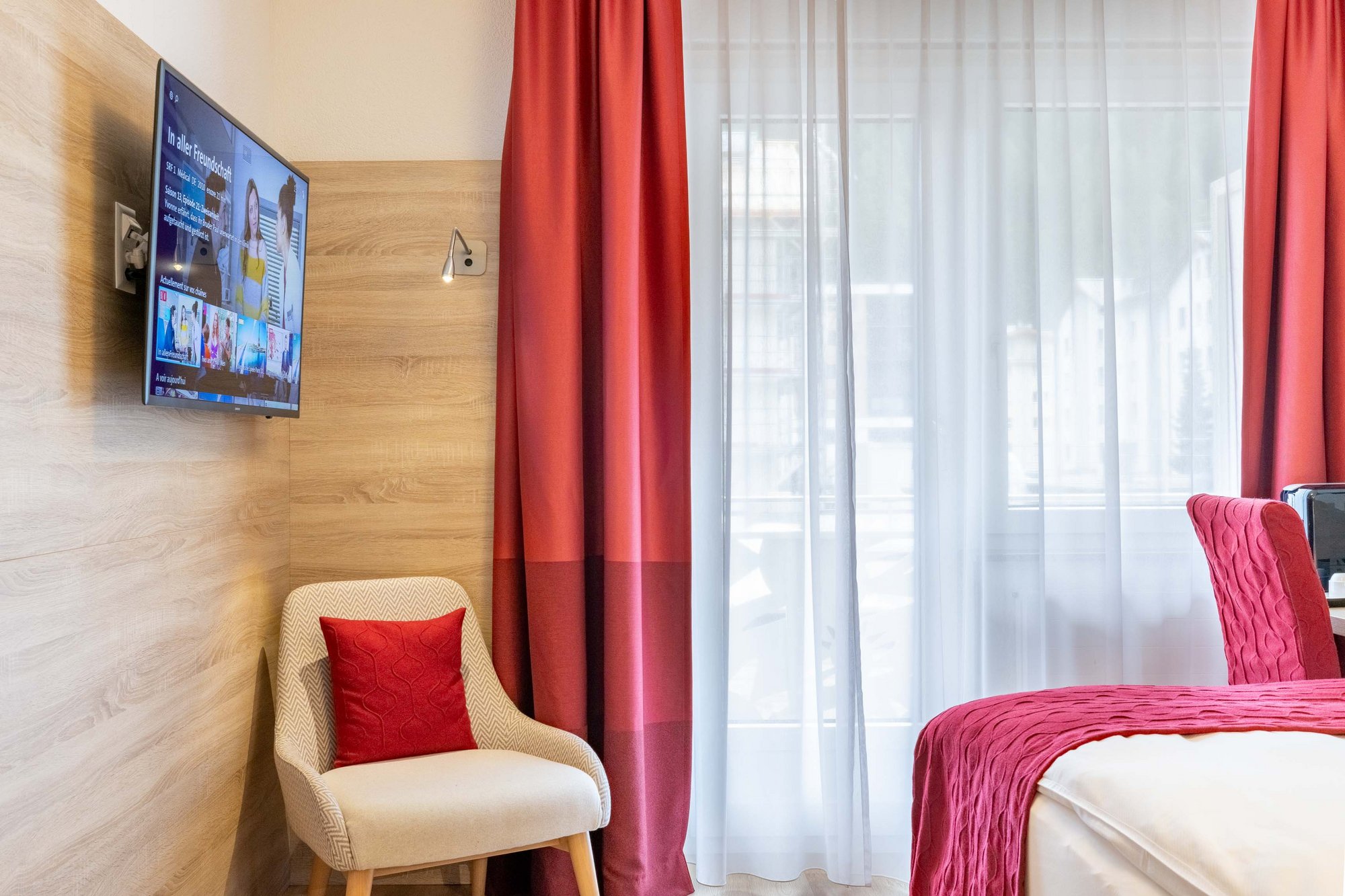 Die Zimmer verfügen über Boxspringbetten in Überlänge 100x220cm, Duvet mit 90% weisse Gänsedaunen (auf Wunsch Anti-Allergiker Bettinhalt), Kopfkissenmenu,43“ TV mit 80 TV Programmen in 8 Sprachen und 12 Radioprogrammen, gratis WIFI, Tresor, Kaffeemaschine mit Teefunktion und Kaffee-/Teesortiment, Tisch und ein Stuhl. Das grosszügige Badezimmer ist mit Badewanne, WC und Fön ausgestattet.
