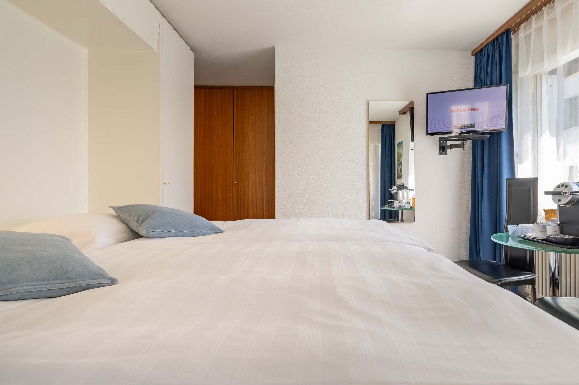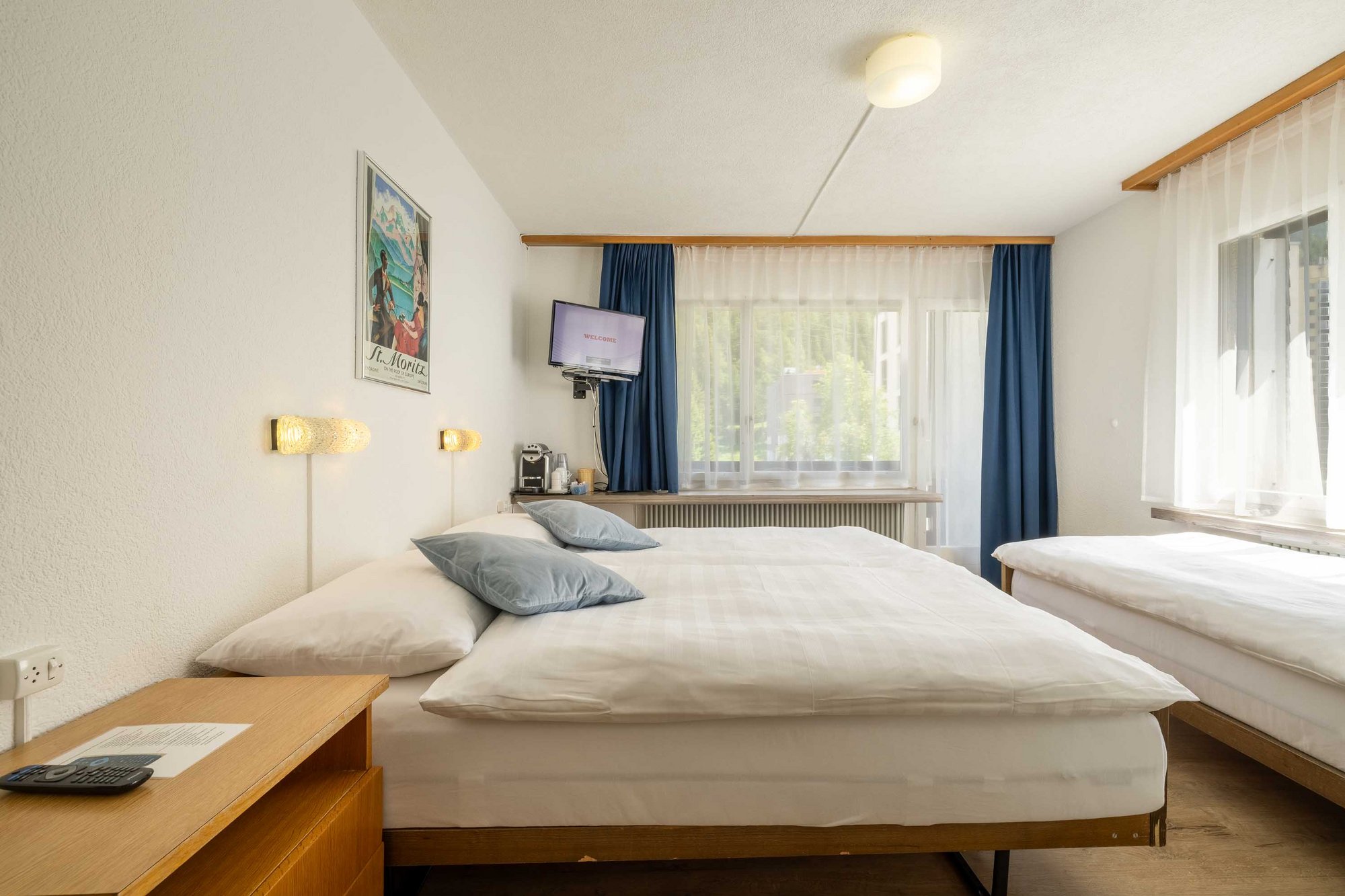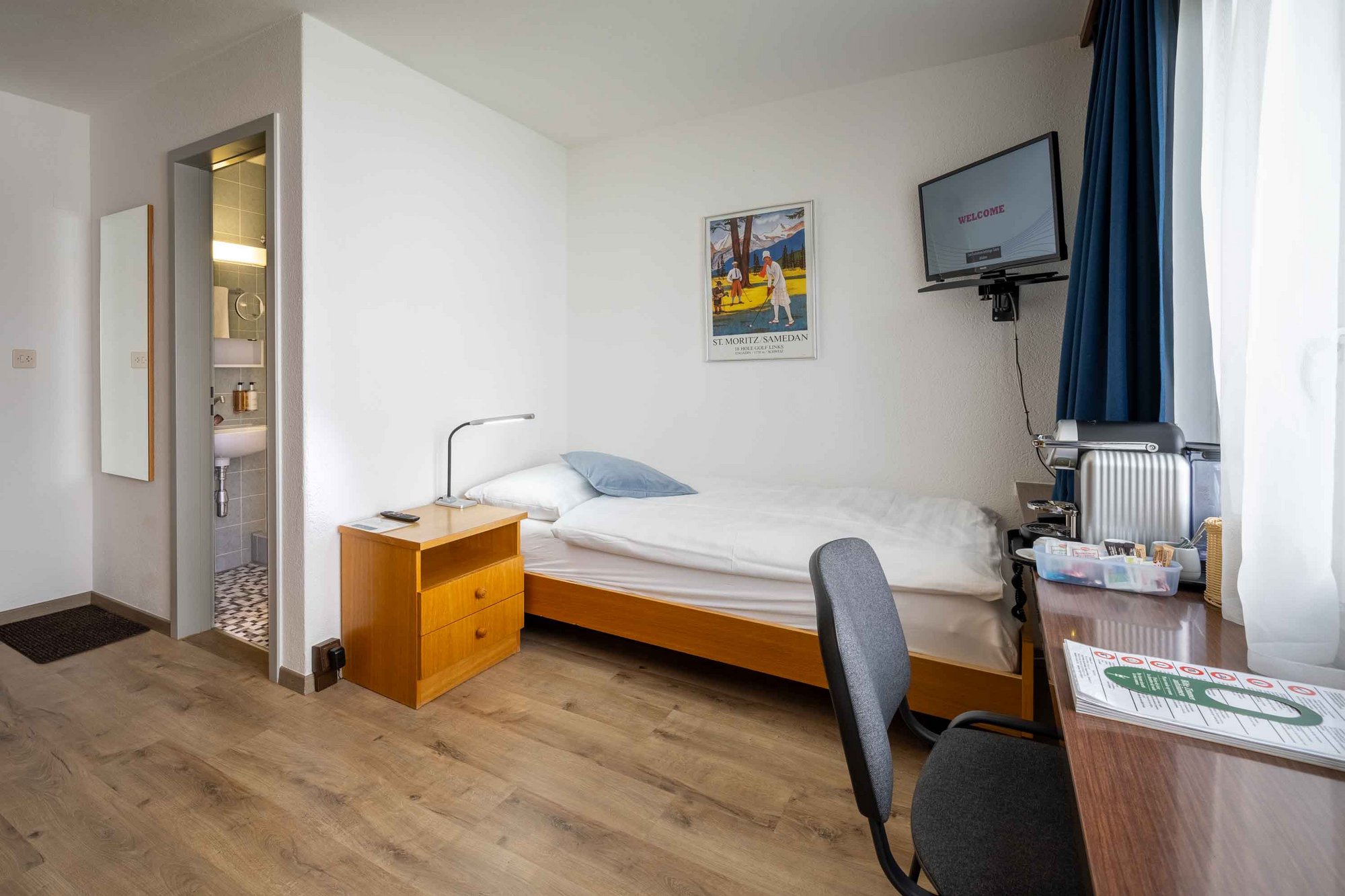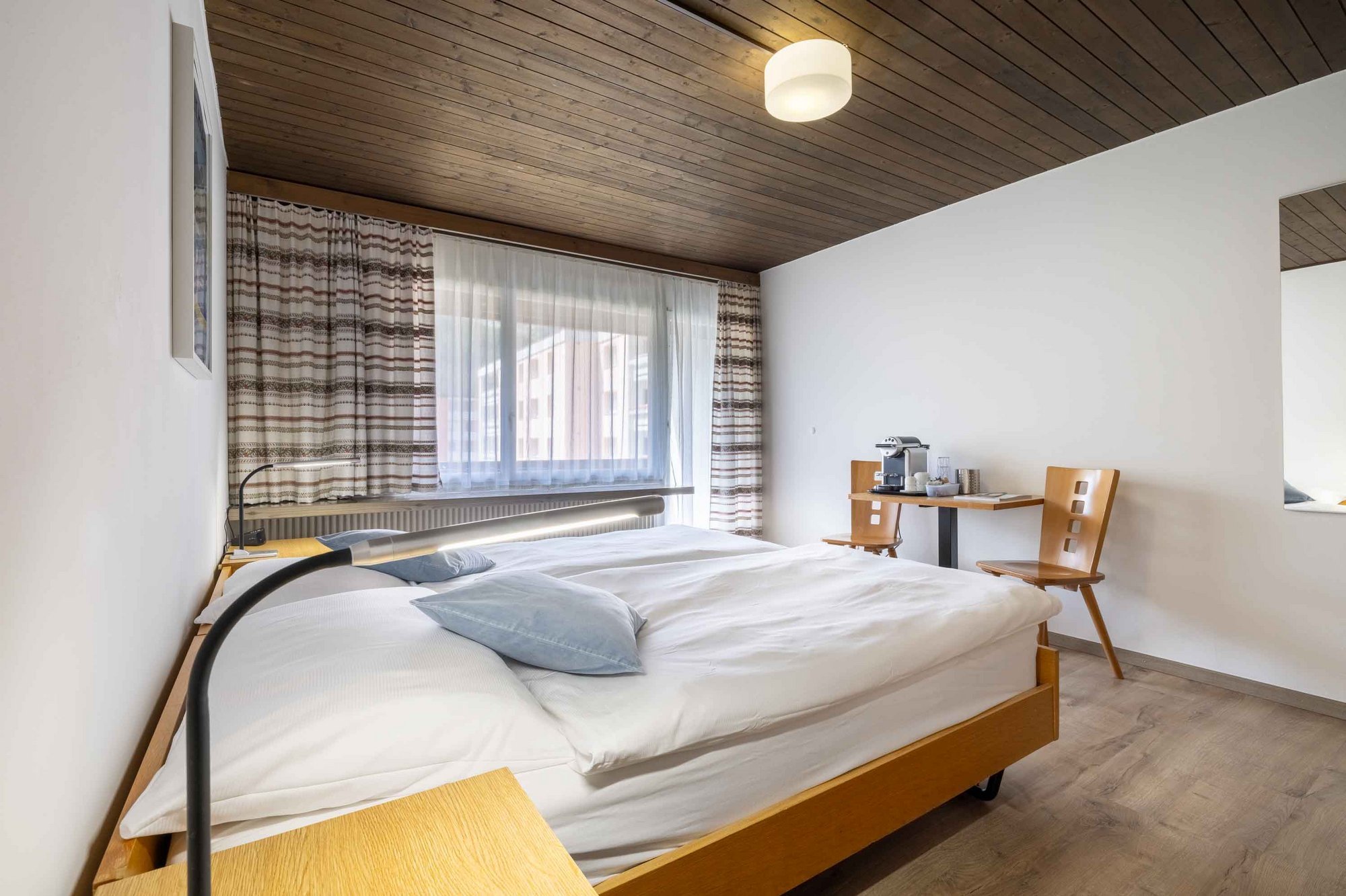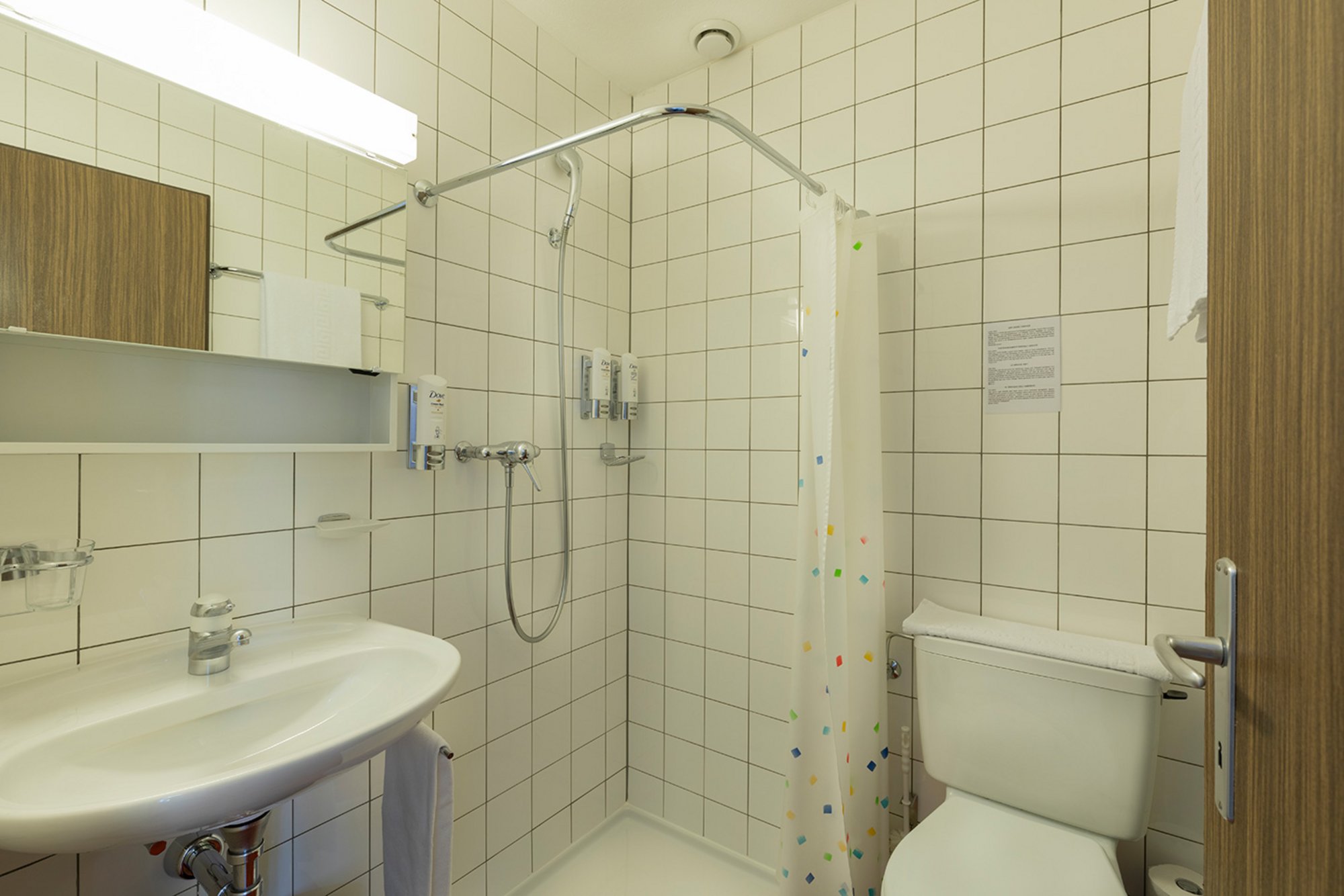 Hier können Sie zwischen Einzel- bis Vierbett-Zimmern mit Badewanne oder Dusche/WC, Fön, Telefon, gratis WiFi , Fernseher und Radiowecker und grösstenteils mit Balkon oder einfachen Einzel- bis Achtbett-Zimmern mit Etagendusche/WC wählen.